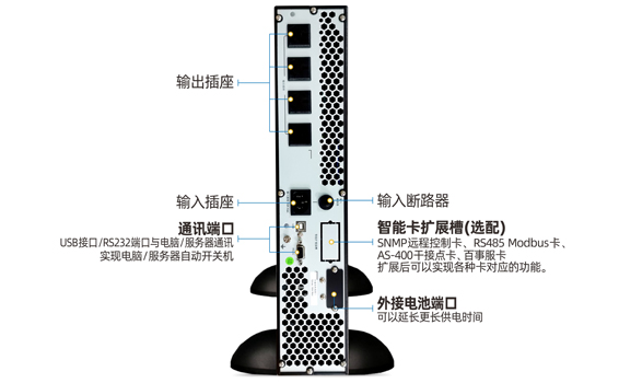 可安裝至普通的網絡機柜、服務器機柜等里面工作,節省空間。該機型占用空間高度為2U,內置蓄電池,停電后延時10分鐘左右。